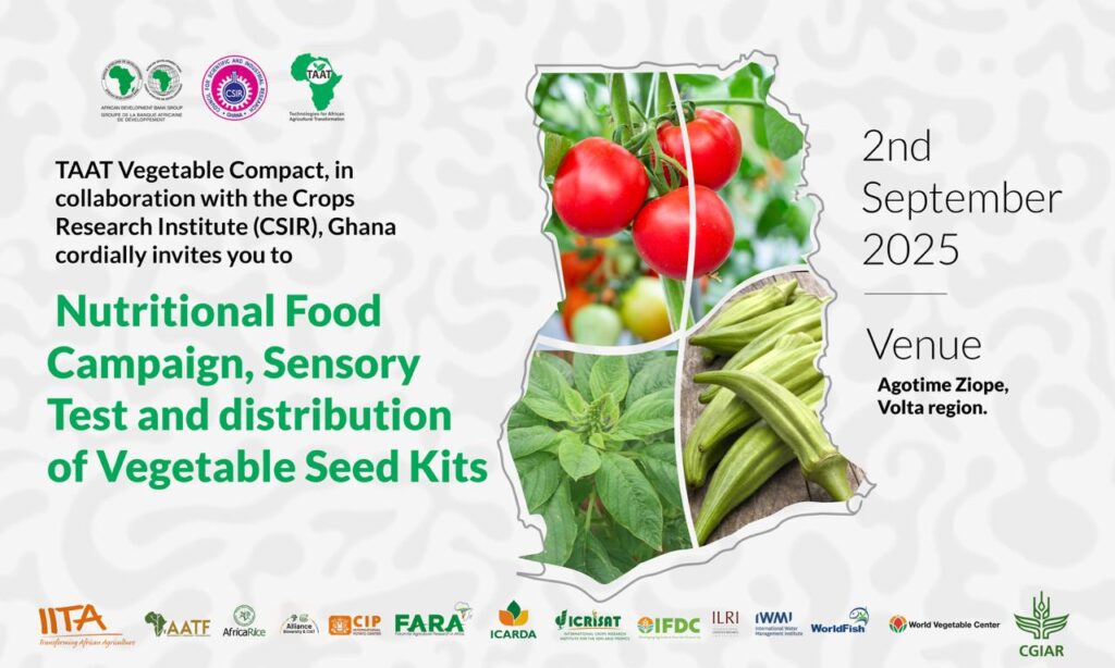 The Technologies for African Agricultural Transformation (TAAT), in collaboration with the Council for Scientific and Industrial Research–Crop Research Institute (CSIR) and the World Vegetable Centre, launched the initiative in Volta Region’s Agortime-Ziope District under the TAAT Vegetable Compact framework, introducing disease-tolerant crops that promise to reshape vegetable sector profitability.